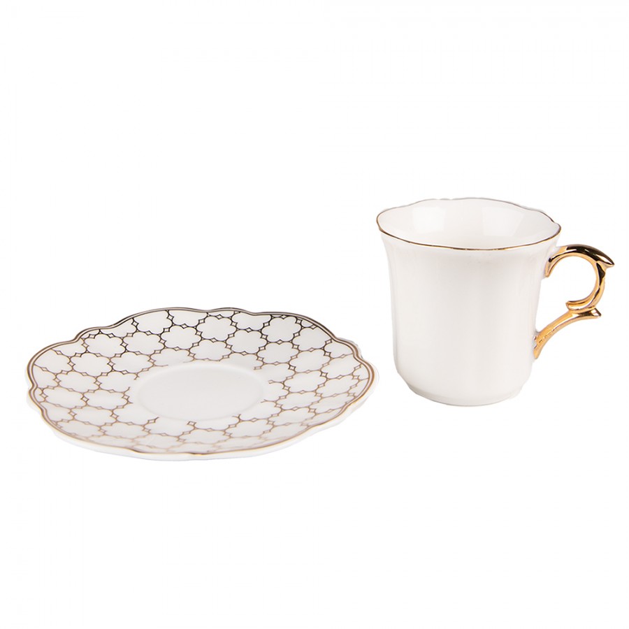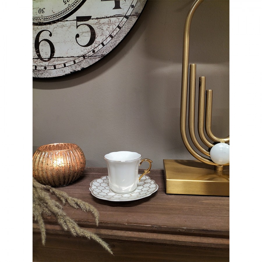 Tasse et soucoupe 95 ml Blanc Couleur or Porcelaine Vaisselle