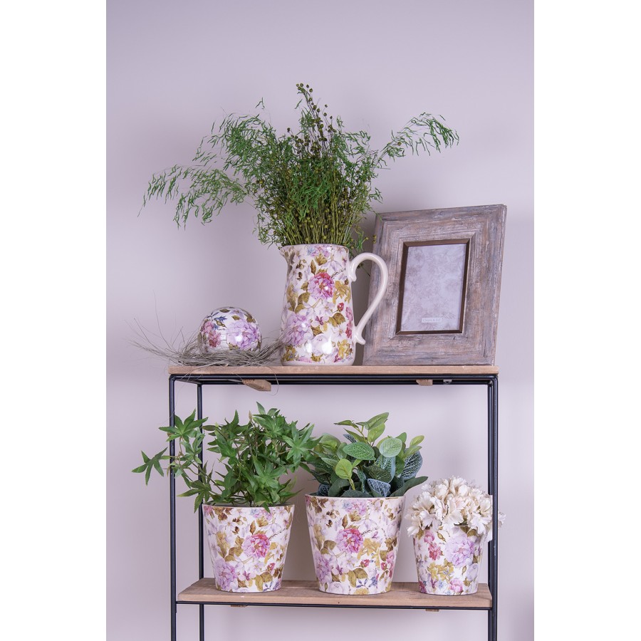 Pichet/vase de décoration 20x14x23 cm Rose Beige Céramique Fleurs Carafe d'eau